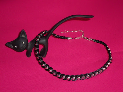 Pulseira ou Colar com Missangas em Fio de Cetim Preto - 7,99 "Gatos Pretos"